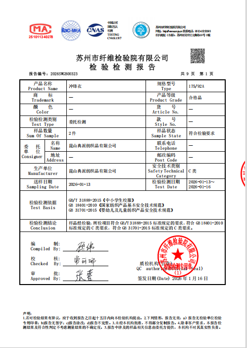 江苏省昆山中学2025级新生校服检测报告5
